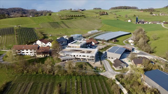 Die neuen Tagungs- und Bürogebäude, welche Ende letzten Jahres bezogen wurden und im Verlauf des Jahres 2022 feierlich eröffnet werden, stellen die vorläufig letzte Etappe der Bautätigkeiten am FiBL dar. Neben diesen Gebäuden gehören der 2019 realisierte Neubau eines Forschungsgewächshauses und Laborgebäudes sowie der 2020 eröffnete moderne und tiergerechte Stall für die Forschung zum Erweiterungsbau des FiBL Campus. Zudem befindet sich neu auf dem FiBL Campus auch eine E-Tanksäule, welche von der Aargauischen Kantonalbank gesponsert wurde und den Mitarbeitenden sowie Gästen zur Verfügung steht.